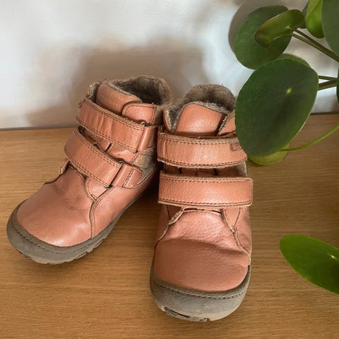 Kavat barnesko unisex i størrelse 21, svart farge. Skoene har borrelåslukking og er foret for ekstra varme.