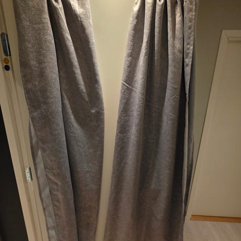 Ubrukte lysdempende gardiner av modell "Vienna" fra Home/Europris. Grå farge. Den ene er åpnet, men ubrukt pga kjøpte feil lengde. Den andre ikke åpnet fordi feilen da var kjent. Nypris 500,-