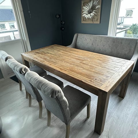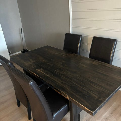 Spisegruppe med 5 stoler og 1 spisesofa selges billig