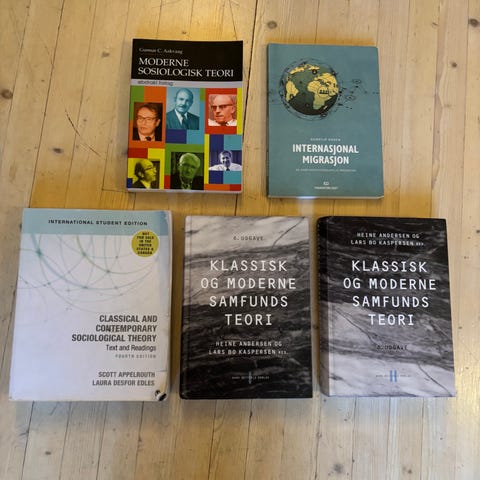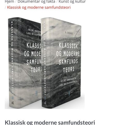 Jeg selger pensumboken Klassisk og moderne samfundsteori av Heine Andersen og Lars Bo Kaspersen.