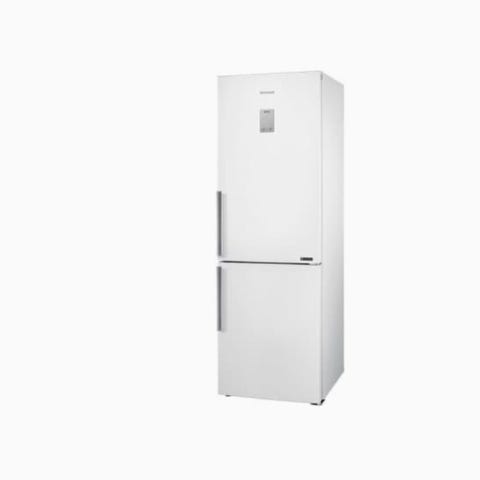 Samsung kjøleskap med fryser i bunn. Hvit farge og standard størrelse for kjøkkenbruk. Passer til oppbevaring av mat og drikke.