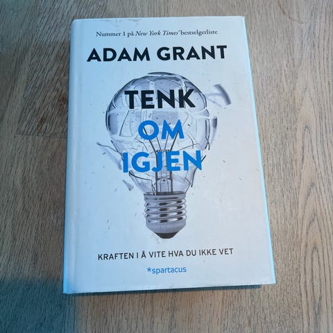 Adam Grant Tenk om igjen. Inneholder temaer om hvordan man kan endre mening, tenke nytt og utfordre egne oppfatninger. Passer for lesere interessert i personlig utvikling og kognitiv vitenskap.