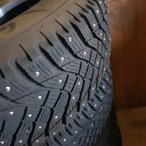 Selger helt nye piggdekk som ikke har rullet en meter eller vært påmontert bil. De er kun satt på felg. Selges grunnet bytte av bil. Felgene ble kjøpt brukt på Finn og følger også med. Er noen skader på felgene, men kan rettes opp av flinke folk!