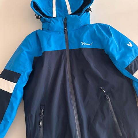 Quiksilver barnejakke i størrelse 158, med farger i blått og svart. Jakken har hette og glidelås foran. Passer til ulike utendørsaktiviteter.