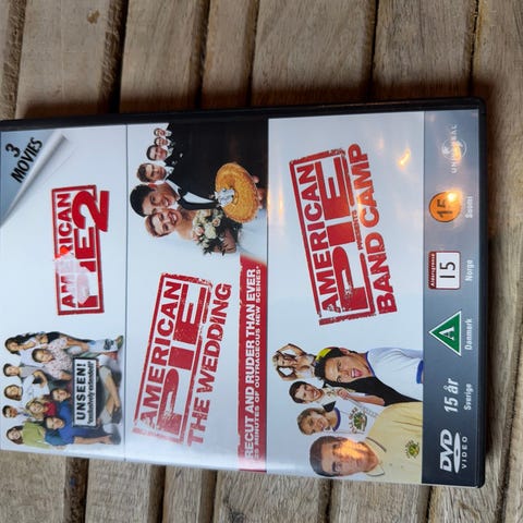 Samling av DVD-filmer fra American Pie-serien, inkludert American Pie 2, American Pie Bryllupet, Beta House og American Virgin. Filmene er i standard DVD-format og inneholder ulike deler av filmserien. The American poop.
