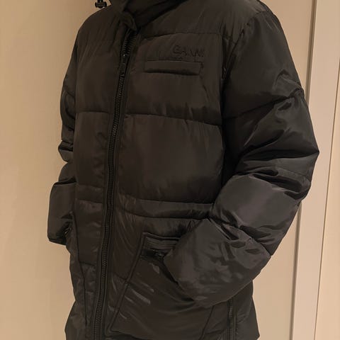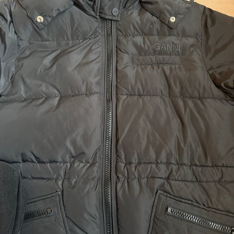 Pen og lite brukt vinterjakke fra Ganni. Den er varm og god og i str L/XL. Jeg opplever at den er romslig i størrelsen. Kan snøres i livet.