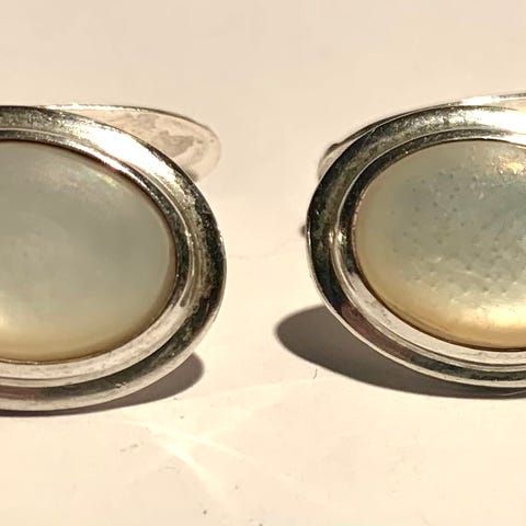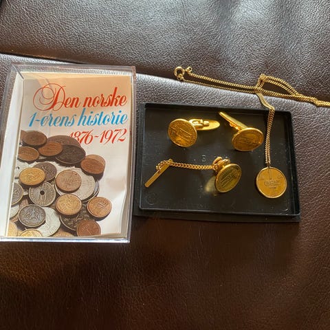 Morsomme mansjettknapper fra Snella & Petronella, porselen med forgylt metallinnfatning. Tekst: "gull verdt".
