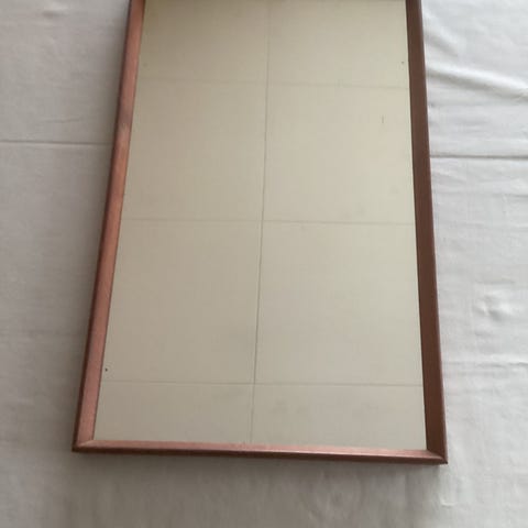 Nydelig lite speil med treramme, kjøpt brukt og er av ukjent opprinnelse, men flott og robust treverk. Gode opphengsmuligheter på baksiden av speilet