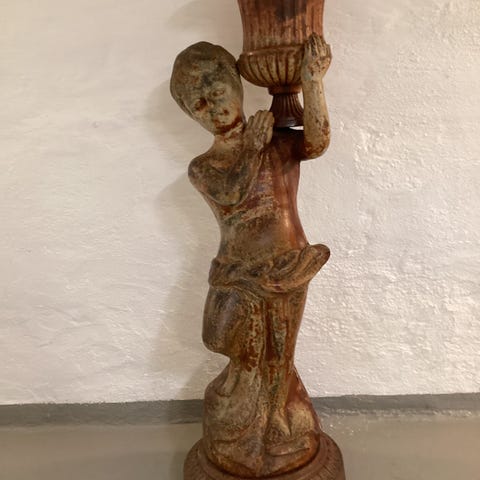 2 sjeldne lykter: frosker i tungt, massiv støpejern med grove pinner, til telys.