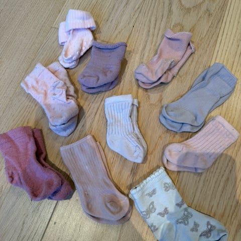 Pent brukt pakke med ullsokker i str 13-15. Totalt 12 par. 3 par fra Name It, resten er fra Reflex. Ingen bruksmerker. Skånsomt vasket på ullprogram med Milo. Røyk - og dyrefritt hjem.