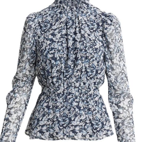 Pent brukt «Duff» sort bluse/skjorte med blondedetaljer på ermene, polyester/bomull (strykefri) fra Camilla Pihl selges, str. L.