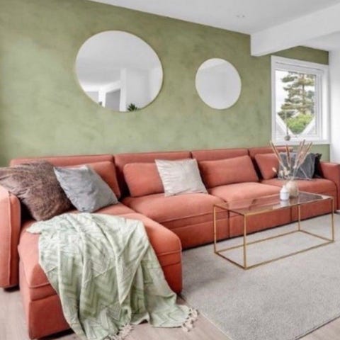 Pen sofa fra 2021. Grønn. Kjøpt ny hos Grindberg, Kristiansand. Mørke bein.