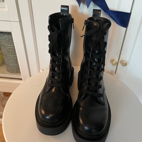 H&M støvler i størrelse 40 med brun farge. Laget av semsket materiale med en hælhøyde som gir støtte. Passer til daglig bruk og ulike anledninger.