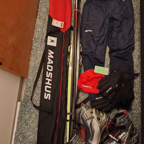 Flotte langrennsski (felleski). Kun brukt to ganger, til to korte skiturer i fjor vinter. Selges med støvler (38) og staver.