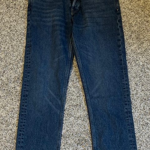 Ikke brukt. Str w34/L32. Se på bilde. 90 cm i midje og 108-110 cm lang. 19 cm x 2 nedest. I hoftene 104-108 cm.