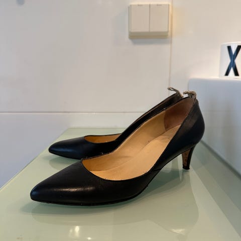 Brukt kun et par ganger, i veldig god stand. Klassisk svart skinn, perfekt til jobb eller fest. Hælhøyde 8 cm