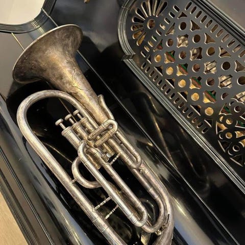 Gammelt althorn av J. Gras Lille (Frankrike) solgt via Tema, Bergen.