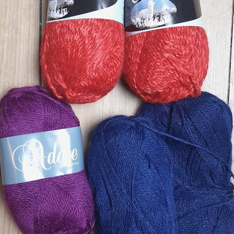 Tre nøster tykk alpakka, fire nøster tynn alpakka, alle grønnmelert.