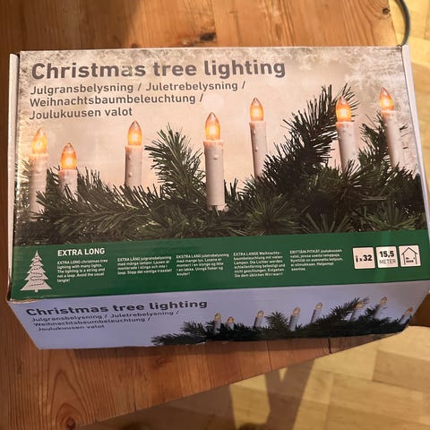 Juletrelys til å ha inne gis bort. Må hentes