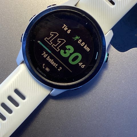 Garmin Forerunner smartklokke med svart reim. Passer for bruk ved trening og daglig bruk. Klokken har rund urskive og flere funksjoner for aktivitetsmåling. Fungerer helt fint, selges ettersom jeg fikk en ny Garmin klokke til jul av kona
