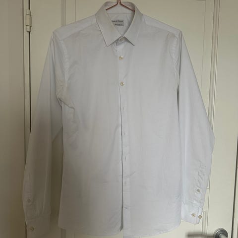 Weekday Poplin skjorte i størrelse L. Skjorten er hvit og laget av poplin (100% bomull) materiale. Passer til menn. Litt tykkere kvalitet. Tøff skjorte. Fremstår som meget pen:)