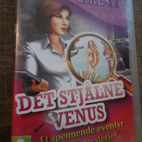 Girl-IT Det Stjålne Venus PC-spill. Eventyrspill med fokus på et spennende mysterium der spilleren følger etter en stjålet maleri. Inneholder ulike oppgaver og gåter i en historisk setting. Selges 100kr +porto. Kan også sende uten fiks ferdig. Se også mine andere annonser.