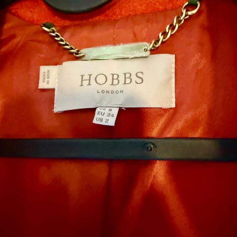 Semsket kåpe i str L selges. Litt liten i str, spesielt over brystet. Pen kåpe, kun en flekk på forsiden. Se bilde. Er ikke forsøkt fjernet.