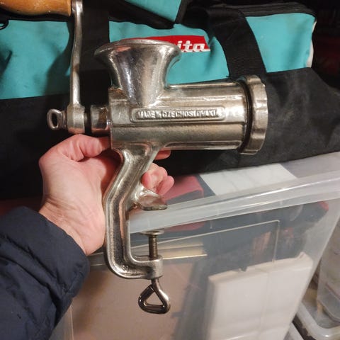 Lite brukt god gammeldags manuell kjøttkvern til salgs
