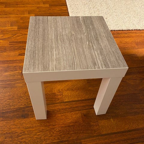 Pent og praktisk LACK bord fra IKEA i hvitbeiset eikemønstret utførelse. Tidløst design som passer godt i de fleste rom – perfekt som sidebord, stuebord