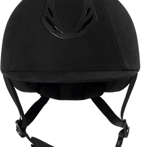 CRW Ridehjelm svart farge. Hjelmen har ventilasjon og justerbar stropp for sikker passform. Str M 55-57 cm.