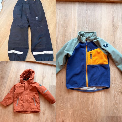 Polarn O. Pyret dress i størrelse 104, passende for barn i alderen 3-4. Avtagbar innerdress i fleece gjør dette til en helårsdress. Dressen er vanntett og har pustende egenskaper. Fargen på dresse er blå, og den er designet for både gutter og jenter (unisex).