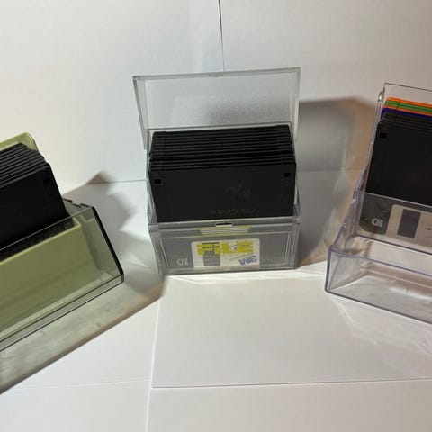 Diskettene er forskjellige farger og egnet for dataoverføring og lagring på Amiga.