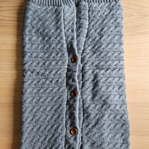 Hjemmestrikket kengurupose i merinoull. Perfekt å legge babyen i nå om vinteren ❄️