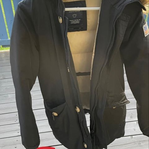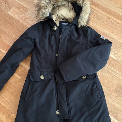 Svea jakke i størrelse S for dame. Jakken er beige og laget i teddystoff materiale. Lite og pent brukt. Kommer fra dyre-og røykefritt hjem.