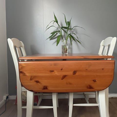 Lakkert kjøkkenbord med 4 stoler. Kan ikke hentes før 13 januar