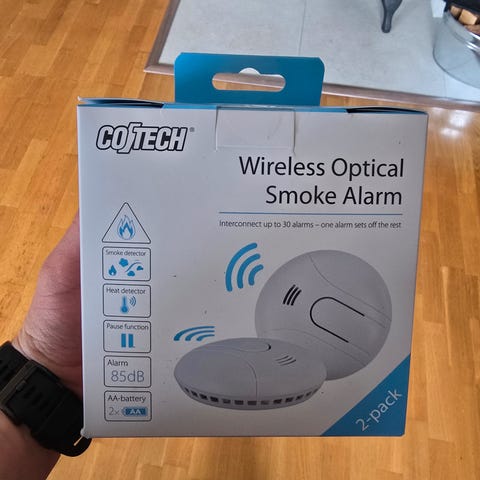 En røykvasler med wifi, pipper som alle røykvaslere men sender også melding via app på alarmen. Du får melding på mibilen.
