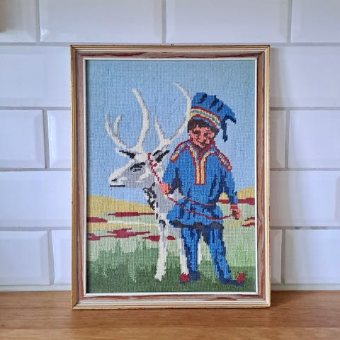 Et av same mann med rein og ett av same kone med reinsdyrskalv