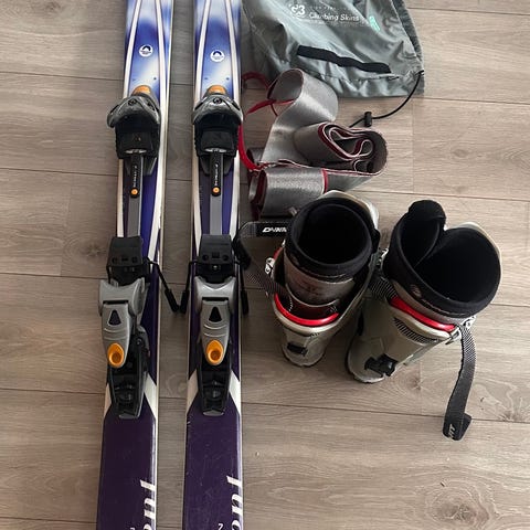 Fisher TransAlp 88 selges med marker alpinist 8 og feller som er tilpasset skia. Disse er ikke mye brukt så det er mye ski igjen her.