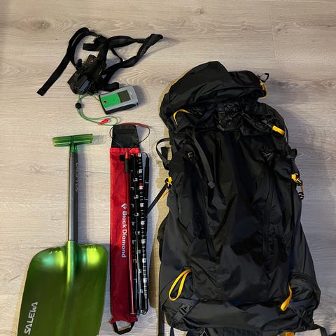 Komplett skredpakke fra Mammut. Svært lite brukt og kjøpt nytt i 2024. (Bilder lånt fra annonse på nett)