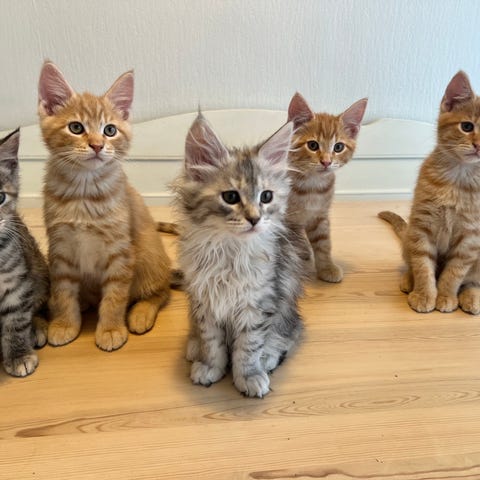 Main coon mix kattunger selges. 3 gutter og 2 jenter. Mor er 75 % Main Coon - far - renraset Main Coon. FØDT 01.11.2025 Leveringsklar fra 24.01.2025, når de er 12 uker gamel. Leveres med helsebok, omekurbehanndlet og med første vaksine. Kattungene er sosiale, trygge og vant til små barn, noe som gjør dem godt egnet for familier.