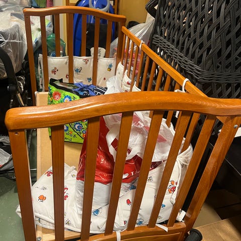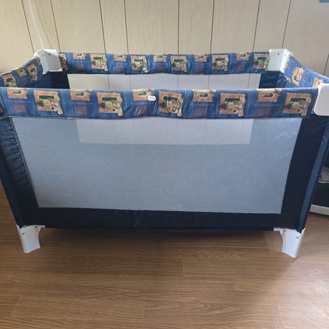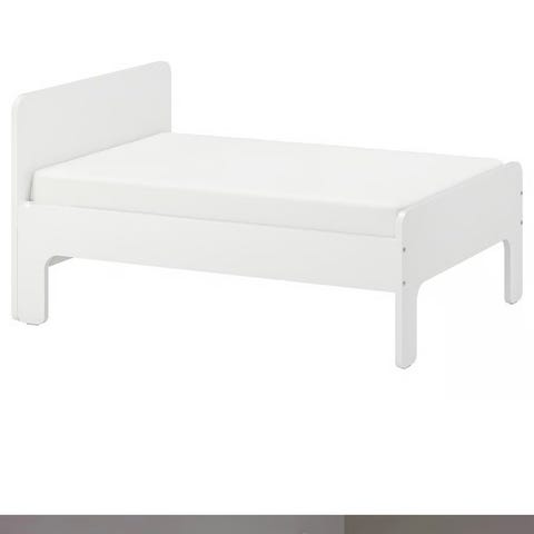 Madrass bredde 73 cm, furu treverk som er lutet.