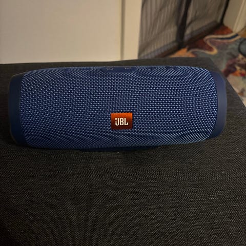 "JBL Charge 3 bærbar høyttaler i svart farge. En kraftig høyttaler med innebygd batteri for trådløs bruk. Egnet for utendørs og innendørs lydavspilling. (Denne teksten på slutten er generert av Finn.no)."