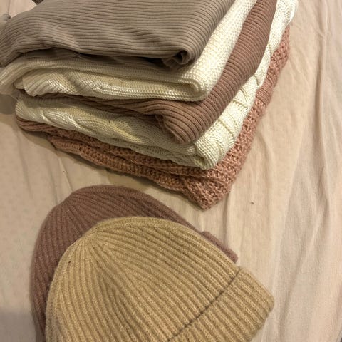 Veldig pent brukt pakke med genserne og nesten ny sjal str S/M eller 49 per stk
