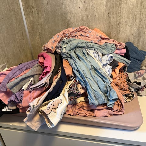 Både finskjorter, joggebukser, tskjorter gensere (tykke og tynne). Samt et pirat kostyme