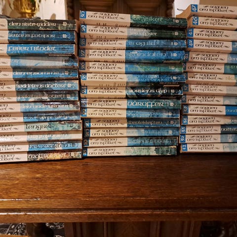 Sagaen om isfolket av Margit sandemo selges kr 40 pr enkeltbok eller 500 for alle