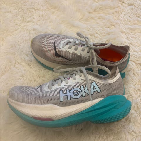 Hoka Mach X2 løpesko i størrelse 38 selges da de ikke blir nok brukt. Løpt ca. 200km med de, men mest inne og generelt lite slitasje på sko og såle. Mye sko igjen, så prøver heller å selge de rimelig i håp om at noen kan få bruk for de :)