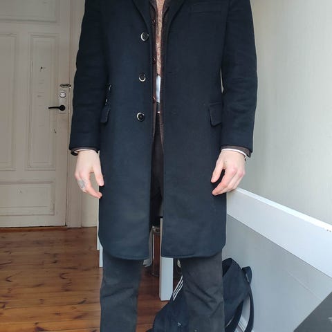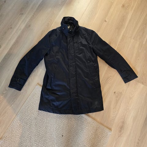 Selger en meget pent brukt Bertoni herrefrakk i navy. Størrelse 50 passer en som bruker M eller L til vanlig