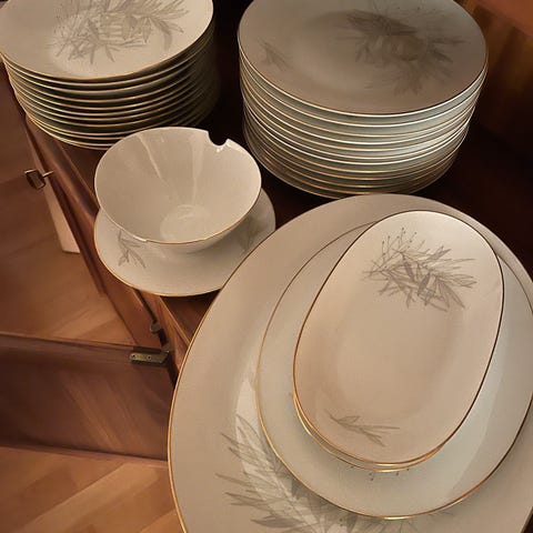 Rheinkrone Bavaria middagsservise 48 deler selges. Pent mønster i gull.