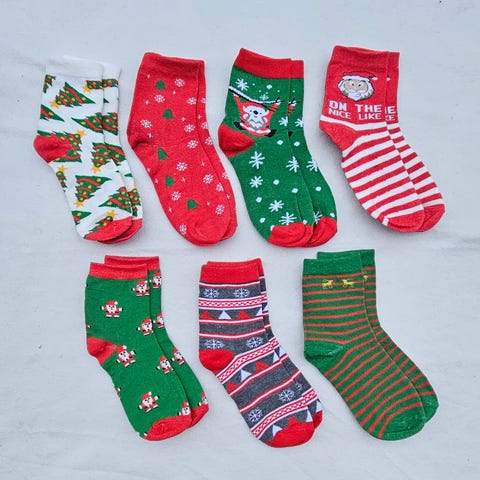 Nye julesokker i onesize størrelse. Det ene parret har en ordinærpris på 179kr.