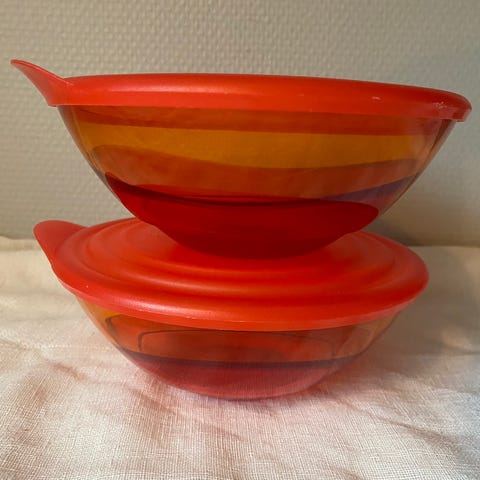 To serveringsskåler fra tupperware selges for 100,- pr stk.